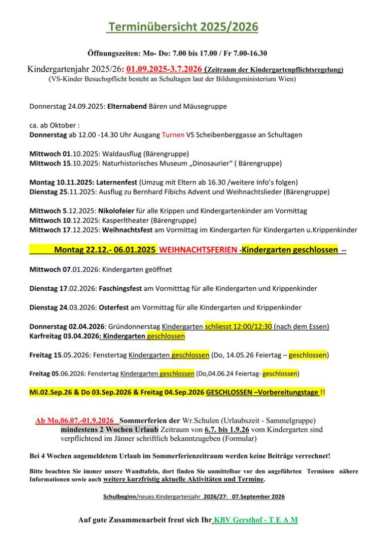 PRIVATKINDERGARTEN KBV GERSTHOF und KINDERWELT